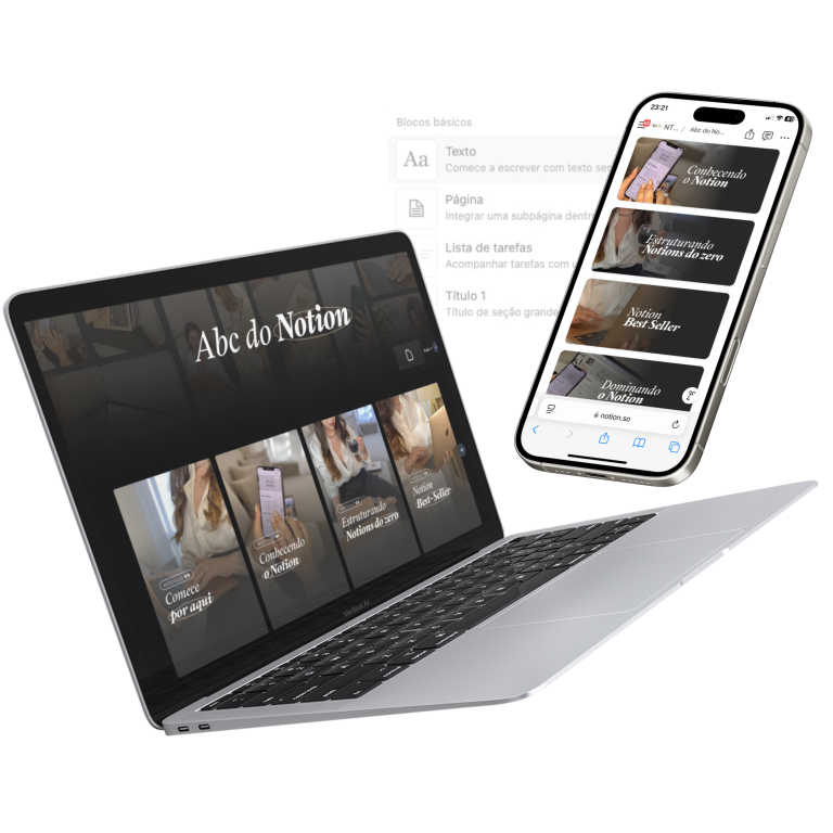 Aprenda do zero ao avançado a criar Notions funcionais e atraentes. Se organize e eleve o nível de entrega da sua mentoria, curso ou serviço.